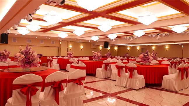 皇宮廳—金碧輝煌、皇宮式裝修,面積1038㎡,層高8.6米,配備愛情階梯、軌道威亞、二層觀禮臺、浪漫燈光秀、旋轉(zhuǎn)升降舞臺、頭頂天幕連接開合大屏。可承接50桌的大型宴會,也可舉辦600人的大型會議;還可用作會展、車展場地,每逢節(jié)假日還為市民上演文藝節(jié)目。